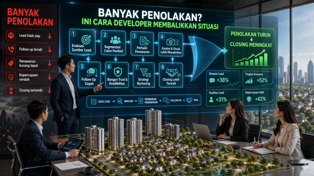 Banyak penolakan adalah fase yang sangat umum dalam bisnis properti. Calon pembeli datang, bertanya detail, meminta brosur, membandingkan harga, lalu menghilang. Ada juga yang langsung menolak karena harga, lokasi, akses, atau merasa proyek belum cukup meyakinkan. Bagi developer, kondisi ini sering terasa melelahkan karena tenaga promosi sudah keluar, tim sales sudah bergerak, tetapi hasilnya belum sesuai harapan. Meski begitu, penolakan bukan berarti proyek Anda pasti tidak laku. Dalam banyak kasus, penolakan justru menjadi sinyal bahwa ada elemen yang perlu diperbaiki, dipertajam, atau diposisikan ulang.